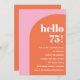 This birthday invitation features a bold pink and orange colorblock design paired with modern serif typography for a joyful, celebratory look. The large “Hello 75” headline makes a confident statement, while the clean layout keeps all party details easy to read. Ideal for a milestone birthday that feels stylish, upbeat, and thoughtfully designed. Personalize the name, date, time, and location to create a memorable invitation for a 75th birthday celebration.