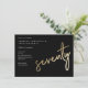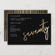 Modern minimalist 70th birthday party invitation features stylish faux gold foil number handwritten script seventy and your party details in classic serif font on black background colour, simple and elegant, great surprise adult milestone birthday invitation for men and women. The black background colour can be changed to any colour of your choice.
