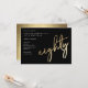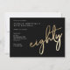 Modern minimalist 80th birthday party invitation features stylish faux gold foil number handwritten script eighty and your party details in classic serif font on black background colour, simple and elegant, great surprise adult milestone birthday invitation for men and women. The black background colour can be changed to any colour of your choice.