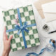 Modern Bold Green Christmas Chequered Tree Pattern Wrapping Paper
