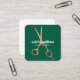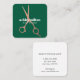 Modern Bold Green Faux Metal Scissors Hair Stylist Square Business Card