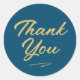 Modern Bold Handwritten Script Thank You Blue Classic Round Sticker