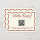 A simple and elegant calligraphy colourful retro wedding rsvp card. That has a vintage modern stylish milky ivory background with deep red script and hand drawn whimsical wavy frame. With customisable QR code. Minimalist and chic with handwritten lettering . It is all editable by clicking on the personalise button.