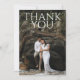 This modern and bold thank you card features a large thank you message on top of a photo background. The couple's names and additional thank you message are on the back, along with a blank space to handwrite your personalised thank you message.
