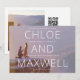 This modern and minimalist wedding invitation features a full page photo with a beautiful and bold type overlay highlighting the couple's names. The date and location accent the main type. The back of this luxe wedding invitation photo card includes an additional photograph and QR code to direct guests to the wedding website for more details. This wedding invitation is perfect for couple's seeking a simple and modern aesthetic that emphasises the couple's photograph and names.