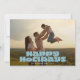 MODERN Bold Retro Blue Typography Photo HAPPY Holiday Card