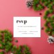 Modern REAL ROSE GOLD Rsvp Cards, featuring chic bold RSVP in oversized real rose gold foil bold retro lettering over a simple yet elegant white background. Mix and match colours with the invitations and other stationery according to your wedding colour template.