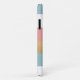 Chic iPhone 11 case, with a modern bold white, rose pink, blue and gold horizontal striped pattern. Personalise the one letter monogram as a great gift idea.