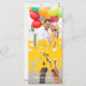 This modern save the date magnetic card features a contemporary design layout with big, bold and slightly tilted sunny yellow text overlaying a single full bleed custom photo. It is perfect for the hip and trendy couple.