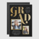 A modern photo graduation invitation and announcement magnet featuring a bold metallic type overlay and two photo design.