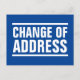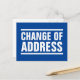 Modern bold typography change of address moving postcard. Simple moving cards for new home or relocation. Big letter design for new family home, corporate business, company, office, shop, store etc. Blue or custom background color. Give people notice we have moved. Add your own new location on the back. Change the quantity to get the cheap bulk price. Also handy for clients, guests, co workers etc.