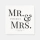 Elegant black and white trendy typography wedding family name personalised paper napkins.