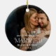 Modern Christmas ornament featuring a minimal layout with "Married" in bold typography along with your names and the year over your favourite photo. All text elements are white and may be changed in the design editing tool. This simple yet elegant ornament is a great gift for a newlywed couple or to commemorate your own wedding.