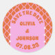 Modern Bold Wedding Date Save the Date Pink Orange Classic Round Sticker