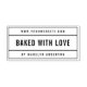 Stylish Baked With Love Rubber Stamp featuring your name and website address in bold fonts between divided rectangle border.