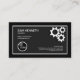 An exquisite creamy black design. Simple Modest, a frame within a frame. The card face is encapsulated by a white border on the cards outer rims. Within its borders, it is a shade lighter ; A dark grey. At the corner of this box are three gears representing the mechanism of being an engineer. Directly across you have your name and job title, with the contact details in tow. Directly underneath, is your elegant logo. Eastwards, you have all your business details. Overleaf the same colour theme applies. All information are housed at the card's midsection. At the top, you have your second logo option. If you so wish to upload your photo, the dimensions are 1,000 x 1,000 pix. Beneath the logo are the business name, a slogan tagline option for you to personalise your design and finally the business URL. This is a simple great design to represents your artistic and immaculate talents. This card may be suited for engineers or just about anyone who loves black.