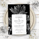 Modern Botanical Floral Black And White Wedding Invitation