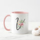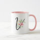 This modern mug showcases a graceful script letter "V," beautifully accented by an exquisite botanical flower design. The elegant typography paired with vibrant floral elements creates a fresh and stylish look, perfect for brightening your coffee or tea routine. Ideal for both personal use and as a thoughtful gift, this mug seamlessly blends art and functionality.
