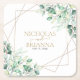 Modern Botanical Greenery Eucalyptus Gold Wedding Square Paper Coaster