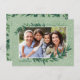 Two dark eucalyptus sprigs frame your family photo, which is framed in refreshing white. The light green background adds to the botanical vibe. Small white snow dots make it feel like winter. Merry Christmas is written in a trendy script at the top. Two lines of text at the bottom let you personalise the card. To make life easier there is a pre-printed return address and holiday greeting on the back This item is part of the Modern Botanical Greenery Christmas Collection.