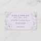 An elegant business card design featuring a soft lavender purple background with delicate botanical line art. The modern name typography is paired with clean professional text for a graceful yet minimal layout. Ideal for beauty professionals, florists, wedding planners, spas, wellness experts, and creative entrepreneurs who want a romantic and refined brand identity.