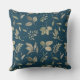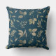 Modern Botanical Leaf Pattern Dark Ocean Blue Cushion