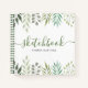 A simple and classic sketchbook with watercolor painting of botanical leaves foliage and a calligraphic font. Personalise it with your name.