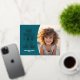 A modern look for a holiday photo card. A simple arch borders the photo with a teal colour background and foil Holiday greeting. Botanical leaves are included on the back.