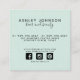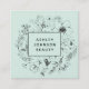 This modern botanical mint and black square business card features a beautiful hand drawn black floral design over a mint coloured background, and overlaid with a black bordered mint rectangle featuring your name and title, or occupation. The back of the card features the same mint background, and you may personalise all your contact information easily. Includes social media icons and a field for your username.