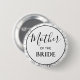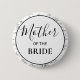 The button features a crisp white center enclosed by a bold black circular border. The signature black and white botanical line art frames the design, maintaining the collection's sophisticated, organic aesthetic. "Mother" is rendered in a romantic flowing script, while "OF THE BRIDE" is set in a modern, bold serif font for a high-contrast, professional look.
