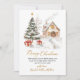 Elegant Modern Botanical 'Merry Christmas' Script Non-Photo Holiday Cards. These festive Christmas cards showcase a stunning watercolor design featuring a serene snowy winter scene with a charming village house, a beautifully decorated Christmas tree, and gifts in the foreground. The 'Merry Christmas' greeting is gracefully hand-lettered in gold calligraphy, adding a sophisticated touch to the clean white background. The reverse side is adorned with a delicate gold snowflake pattern against a crisp dusty green backdrop, enhancing the festive feel. Perfect for customisation, these personalised holiday cards are an elegant way to send warm wishes to family and friends this Christmas season.