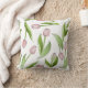 The product design features a pattern of pink tulip flowers. This botanical illustration makes a modern chic and unique square throw pillow - Her birthday, Easter, Mother’s Day, or wedding gift idea.