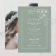 This sage green photo wedding save the date card features modern typography with an elegant botanical line art frame. Personalize the back of the card with your favorite engagement photo! Perfect for couples seeking an elegant minimalist design with simple clean lines and floral accents. For matching wedding invitation suite, envelopes, and more - please view the collection on this page.