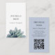 QR code Modern Botanical greenery business card, with a succulent design on a white and light blue background. With customisable black and white text, you can add your own information. You add your website to the QR code field for your customers to scan. A trendy way to promote your design business with a floral style.