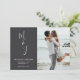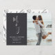 Announce your wedding day with your awesome photo against a midnight colour background along with your initials in a whimsical modern calligraphy script on the front of the card, and soft botanical leaves on the back of the card. Ideal Save The Date for weddings, engagements, anniversaries, and other special events.