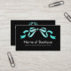 A modern and elegant mint aqua and black beauty boutique business card with a feminine ribbon tied into a girly bow. Personalise by adding the name of your small business and profession.