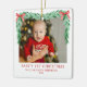 Modern Bow Baby's First Christmas Photo Ceramic Ornament