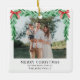 Modern Bow Merry Christmas Family Photo Ceramic Ornament