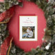 Share holiday greetings with these sweet and simple Christmas photo cards featuring a minimalist layout and a customisable message. Add your favourite square photo on a white background with a luxe gold foil border, and customise your holiday greeting and family signature (shown with "Wishing you Holiday Cheer"). A petite bow at the top in festive holiday red completes the design.