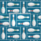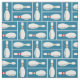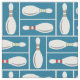 Modern Bowl/ Bowling Pins on Blue Fabric