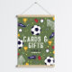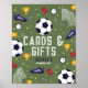 This modern soccer-themed kids’ birthday cards & gifts sign features a vibrant green design with playful illustrations of a football (soccer ball), trophies, stars, goals, and soccer boots. Easily personalize the poster as needed.