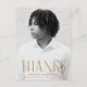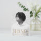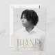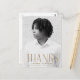 Simple graduation thank you postcard featuring the graduate's vertical photo with "Thanks" displayed in brass/antique gold, modern art deco lettering. Personalise the front of the photo graduation thank you postcard by adding the graduate's name, school name, and graduation year. The postcard reverses to display your return address and provides space for your typed or handwritten thank you message.