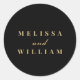 Modern Bride Groom Names Wedding Typography Sticker Seal. Beautiful gold coloured typography on black. Personalise with the bride and groom's names. Excellent for envelope seals and favours. Please visit our store, Austen & Grace, to view the full wedding suite, matching products and more, and please contact us if you require any assistance contact@austenandgrace.com