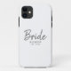 Protect your phone with this Modern Bride Script White Grey Personalised iPhone 11 Case. It is designed with "bride" in modern grey brushed script lettering. Personalised with bride's name and established year of wedding in simple letters. Customisable white background.