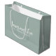 featuring personalised bridesmaid's name in white modern script font style with text in modern sans serif font style on sage green background.