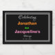 Cute Modern Personalised Wedding Mini Sparkling Wwine Bottle Labels. Simple modern black background with fancy decorative colourful script lettering with fine double white border. Click "personalise this template" to customise mini sparkling wine bottle labels with bride and groom names and date of marriage quickly and easily. 30 Day Money Back Guarantee.