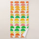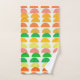 Brighten up your bathroom with this playful towel set featuring a bold and colourful geometric pattern of semi-circles in orange, green, yellow, and pink. This modern, retro-inspired design brings a cheerful vibe to any space, making it perfect for adding a pop of colour to a minimalist bathroom or enhancing a bohemian or eclectic decor style. This towel set appeals to anyone who loves fun, eye-catching designs and a vintage colour palette.