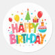 Modern Bright Colourful Classic Happy Birthday Classic Round Sticker. A birthday sticker suitable for anyone.