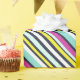 Give your gifts a bright and bold finishing touch, with this colourful wrapping paper. The gift wrap is patterned with diagonal stripes in a combination of vibrant colours, including magenta pink, light blue, lemon yellow, white and navy.