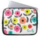 Personalised laptop sleeve with a bright, colourful and pretty flower pattern in summery colours on a white background.